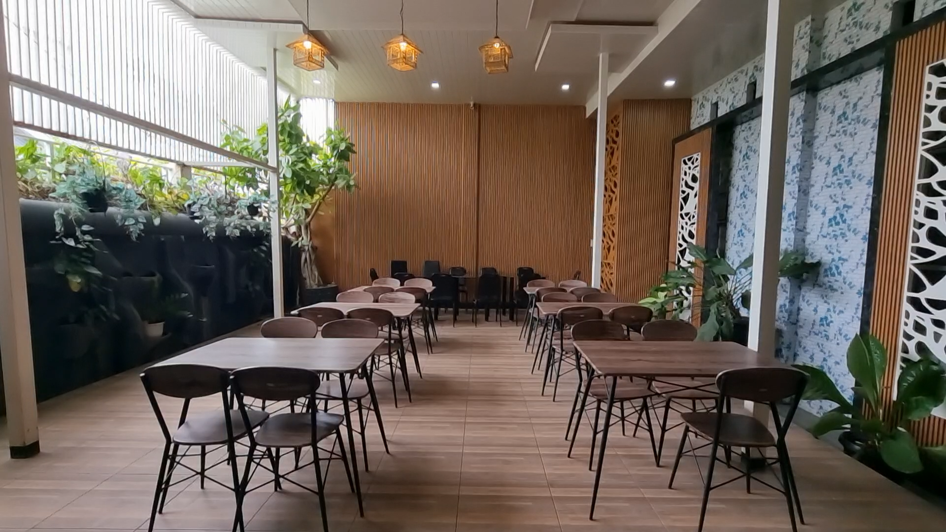 Sarapan prasmanan disajikan di lounge di lantai dasar dan juga di luar di teras kecil kami.